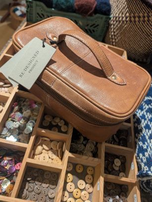 Smart opbevaring af dit igangværende garnprojekt i lækkert design i læder med hank